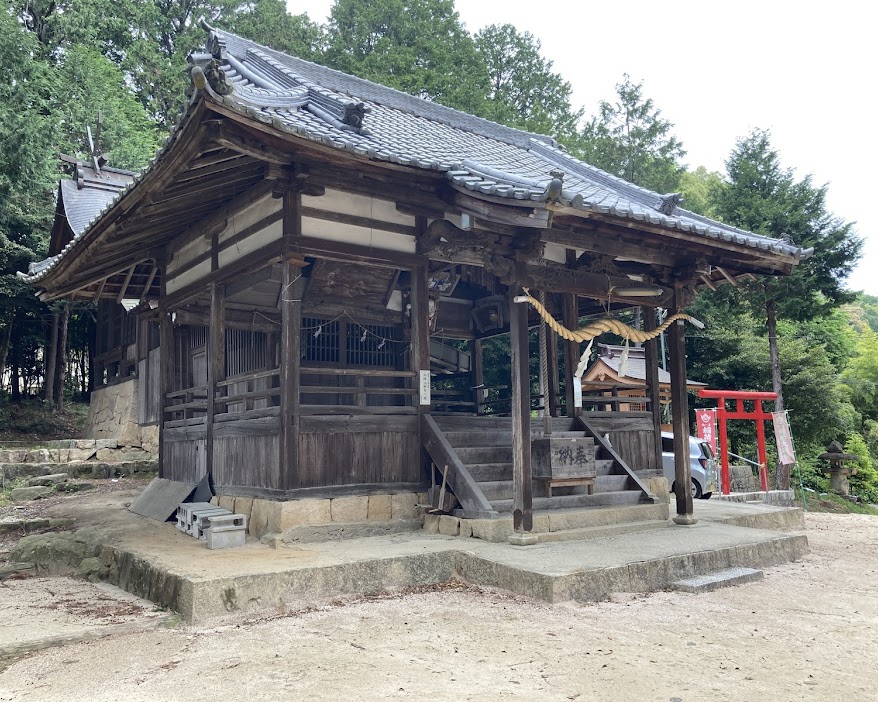 In addition, this shrine is enshrined in the one-room Nagaru-zukuri main shrine, which enshrines the gods of Hachiman, Tarashinakatsuhiko no Mikoto, Hondawake no Mikoto, and Okinagata Shihime no Mikoto. Other structures include the worship hall, storehouses, torii gates, and stone lanterns.