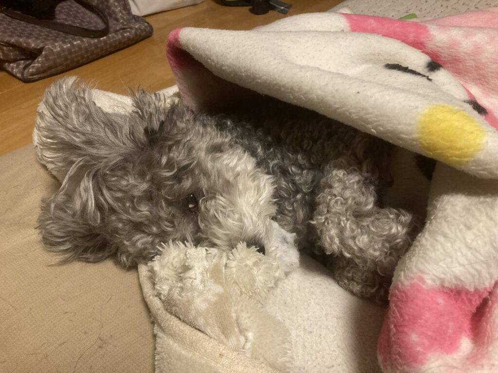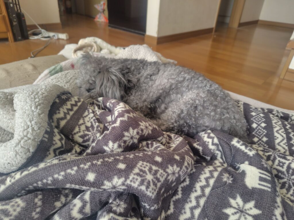 今日はあったかいから大好きなおふとんでモフモフ❤